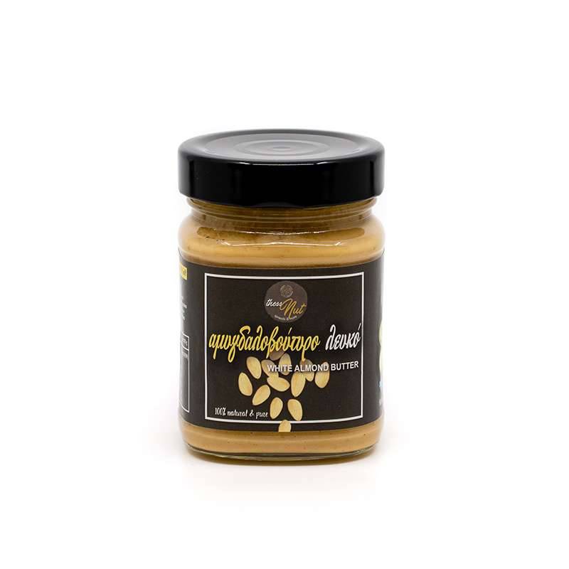 Το βούτυρο λευκού αμυγδάλου, φτιαγμένο από αλεσμένα αποφλοιωμένα (blanched) αμύγδαλα, είναι ένα βούτυρο καρπών που διακρίνεται για την εξαιρετικά λεία, κρεμώδη υφή του και την πιο ήπια, γλυκιά γεύση του σε σύγκριση με το παραδοσιακό βούτυρο αμυγδάλου (που περιέχει τη φλούδα). Αποτελεί μια δημοφιλή επιλογή για όσους προτιμούν μια λιγότερο “ξηροκαρπάτη” γεύση ή αναζητούν μια πιο βελούδινη υφή, ενώ εξακολουθεί να προσφέρει σημαντικά διατροφικά οφέλη.