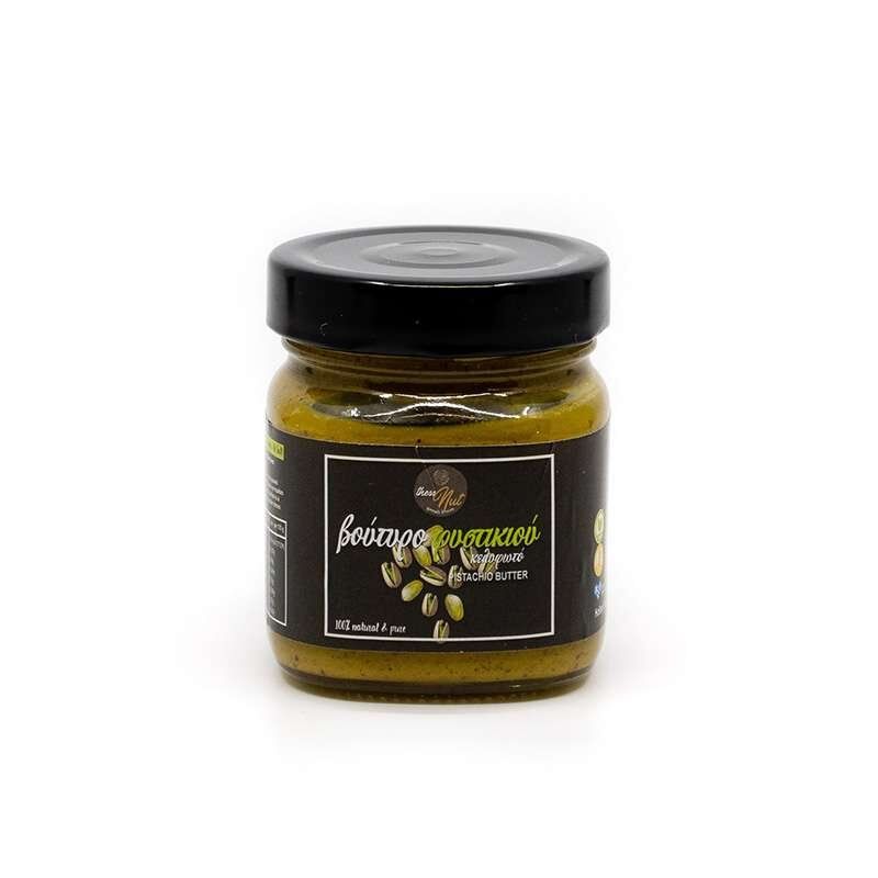 Το βούτυρο μας από κελυφωτα φιστίκια είναι ένα ιδιαίτερο προϊόν, υψηλής διατροφικής αξίας, φτιαγμένο από 100% καρπό ελληνικού φυστικιού αρίστης ποιότητας.Αποφλοιώνουμε,διαλέγουμε,ψήνουμε και αλέθουμε τα φιστίκια μετατρέποντας τα σε ένα απαλό,πρασινωπό,θρεπτικό και ιδιαίτερα γευστικό pistachio nut butter…